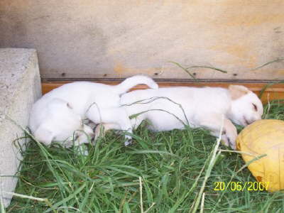 Knut (links) und Toffifee (rechts) nach dem Spielen mit einem viel zu grossen Ball.